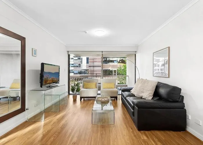 Spacious 1-Bed Flat In Central Sydney is equipped with a fully furnished kitchen. Spacious 1-Bed Flat In Central Sydney is right near the Pyrmont Bay city rail.